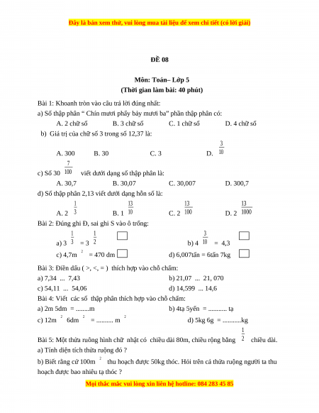 Đây là bản xem thử, vui lòng mua tài liệu để xem chi tiết (có lời giải)