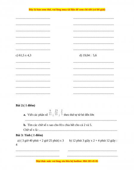 Bộ đề thi Toán 5 học kì 2 năm 2022 - 2023 - Đề 12