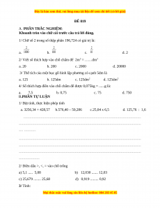 1/ Chữ số 2 trong số thập phân 196,724 có giá trị là: 2 2 2 a. 1000 b. 100 c. 10 d. 2