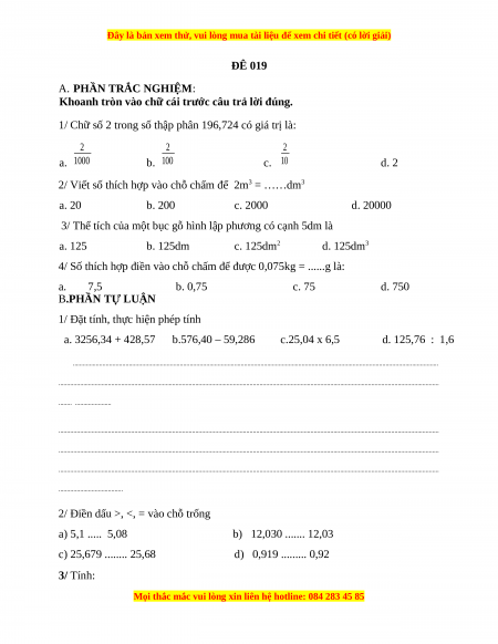 Đây là bản xem thử, vui lòng mua tài liệu để xem chi tiết (có lời giải)