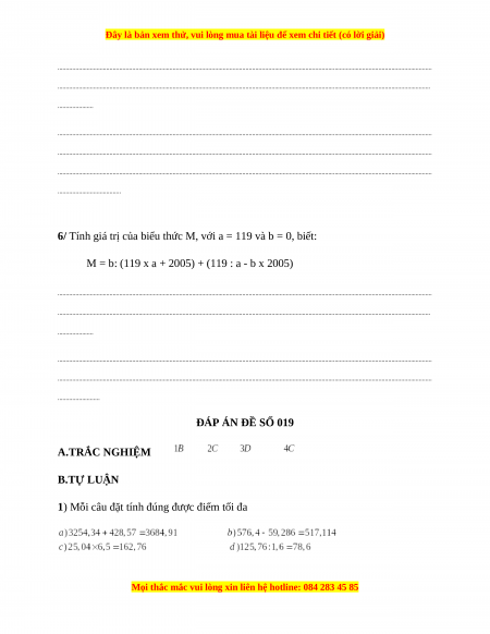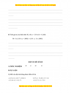 ĐÁP ÁN ĐỀ SỐ 019 A.TRẮC NGHIỆM B.TỰ LUẬN