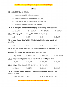 Câu 7: Kết quả đúng của phép tính 12,876 10 = là: (0,5 điểm) A. 1287,6 B. 1,2876 C. 128,76 D. 12876