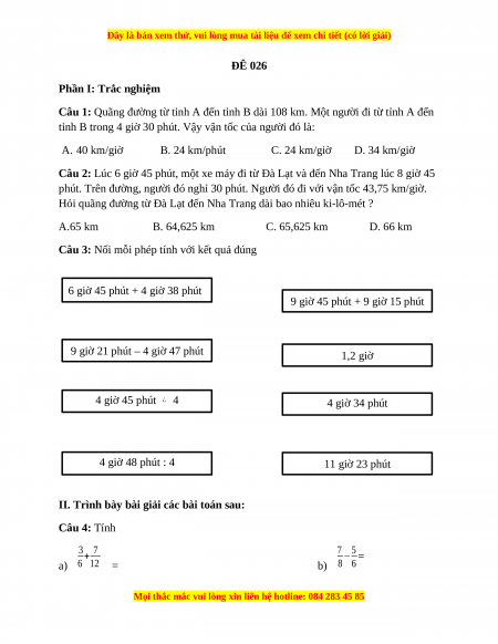 Câu 2: Lúc 6 giờ 45 phút, một xe máy đi từ Đà Lạt và đến Nha Trang lúc 8 giờ 45