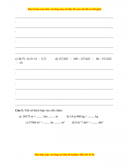 Câu 5: Viết số thích hợp vào chỗ chấm: