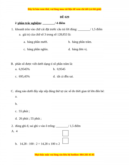 Đây là bản xem thử, vui lòng mua tài liệu để xem chi tiết (có lời giải)