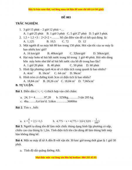 Đây là bản xem thử, vui lòng mua tài liệu để xem chi tiết (có lời giải)