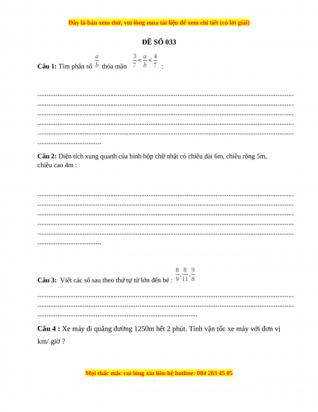 Đây là bản xem thử, vui lòng mua tài liệu để xem chi tiết (có lời giải)