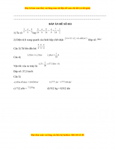 ĐÁP ÁN ĐỀ SỐ 033
