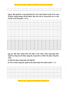 Câu 9: Một người đi xe máy khởi hành từ A lúc 8 giờ 30 phút và đến B lúc 9 giờ