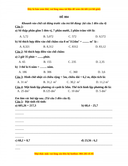 Đây là bản xem thử, vui lòng mua tài liệu để xem chi tiết (có lời giải)