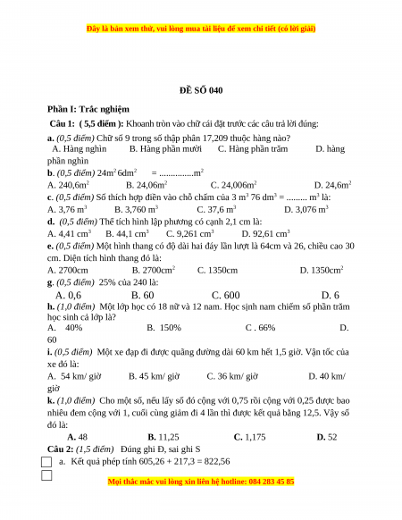 Đây là bản xem thử, vui lòng mua tài liệu để xem chi tiết (có lời giải)