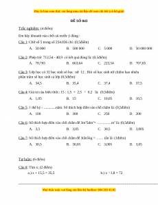 Câu 1: Chữ số 5 trong số 254.836 chỉ: (0,5điểm) A. 50 000 B. 500 000 C. 5 000 D. 50 000 000