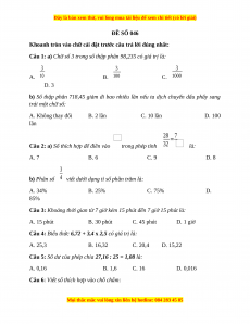 Câu 1: a) Chữ số 3 trong số thập phân 98,235 có giá trị là: 3 3 3 A. 10 B. 100 C. 1000 D. 3