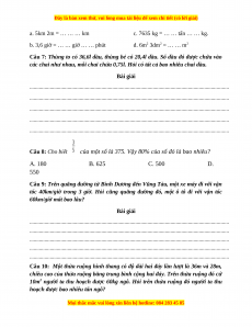 Câu 6: Viết số thích hợp vào chỗ chấm: