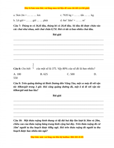 Đây là bản xem thử, vui lòng mua tài liệu để xem chi tiết (có lời giải)