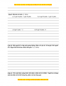Câu 5: Khoảng thời gian từ lúc 9 giờ kém 10 phút đến 9 giờ 30 phút là: (0,5 điểm)