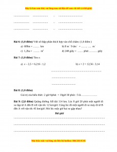 Bài 6: (1,0 điểm) Viết số thập phân thích hợp vào chỗ chấm: (1,0 điểm )