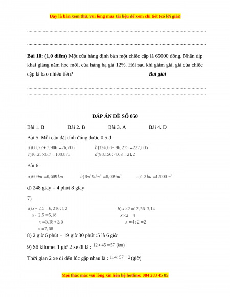 Đây là bản xem thử, vui lòng mua tài liệu để xem chi tiết (có lời giải)