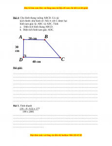 b. Diện tích hình tam giác ADC. A B 20 cm 30 cm D C 40 cm B ài gi ải: