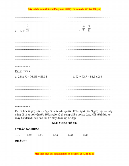 ĐÁP ÁN ĐỀ SỐ 054 I.TRẮC NGHIỆM PHÂN II