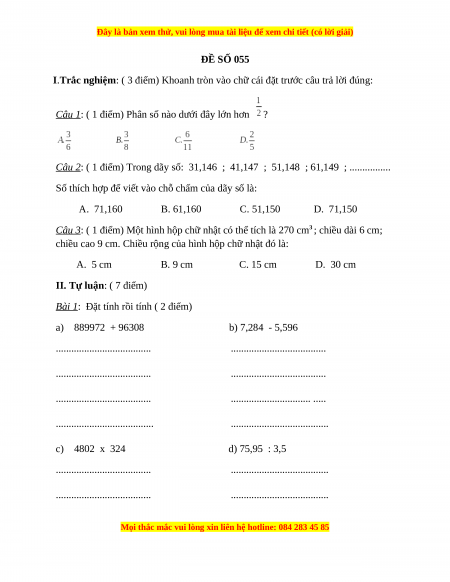 ĐỀ SỐ 055