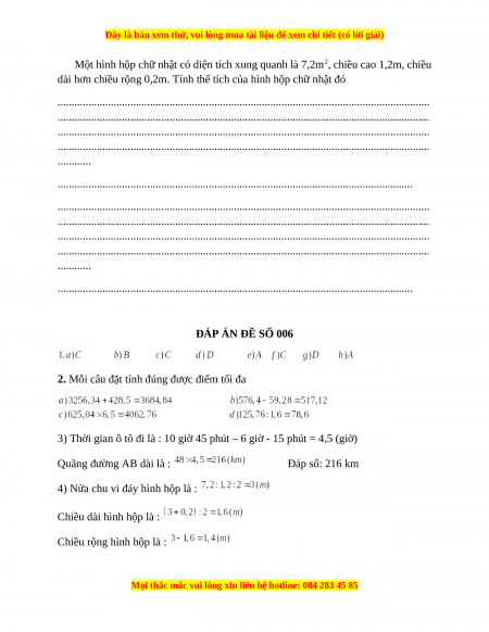 Đây là bản xem thử, vui lòng mua tài liệu để xem chi tiết (có lời giải)