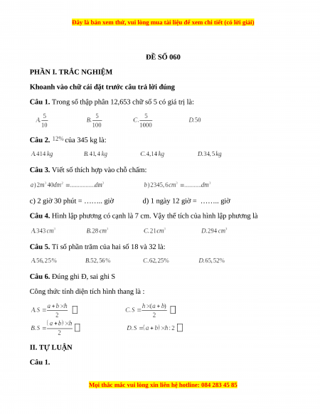 Đây là bản xem thử, vui lòng mua tài liệu để xem chi tiết (có lời giải)