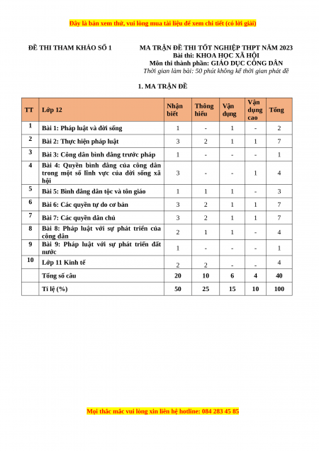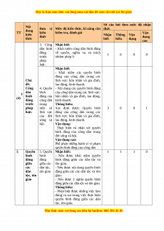 Bài 9: Pháp luật với sự phát triển đất 1 - - - 1 nước 10 Lớp 11 Kinh tế 2 2 - - 4 Tổng số câu 20 10 6 4 40 Tỉ lệ (%) 50 25 15 10 100