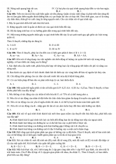 Câu 110: Biết rằng quá trình giảm phân tạo giao tử không xảy ra đột biến. Theo lí thuyết, một tế bào sinh tinh