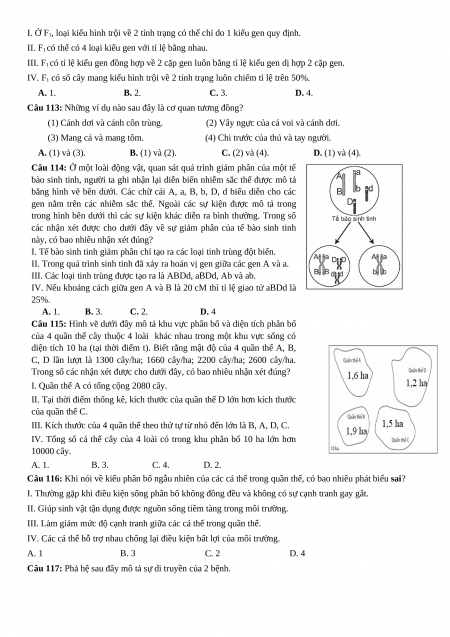 Câu 114: Ở một loài động vật, quan sát quá trình giảm phân của một tế