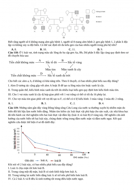 Câu 88: Theo giả thuyết siêu trội, kiểu gen có ưu thế lai thấp nhất là A. AaBBDD B. AaBbDD C. AaBbDd D. aaBBDD