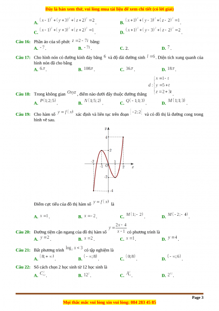 , điểm nào dưới đây thuộc đường thẳng . A. . B. . C. . D. . Câu 19: Cho hàm số