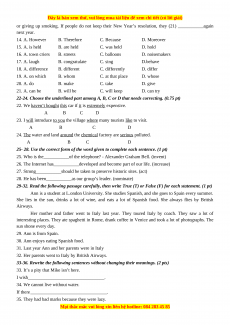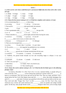 Bộ đề thi tuyển sinh vào 10 Tiếng Anh có đáp án - GV Lưu Hoằng Trí