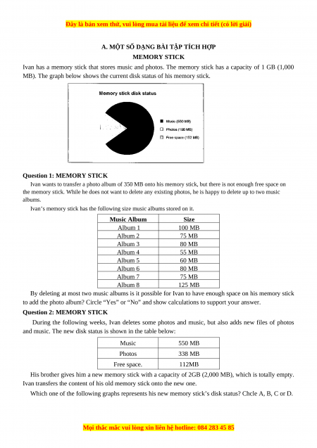 A. MỘT SỐ DẠNG BÀI TẬP TÍCH HỢP MEMORY STICK
