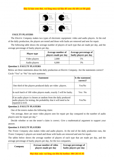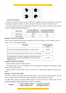 average percentage of faulty players per day. Average number of Average percentage of Player type players made per day faulty players per day Video players 2,000 5% Audio players 6,000 3% Question 1: FAULTY PLAYERS