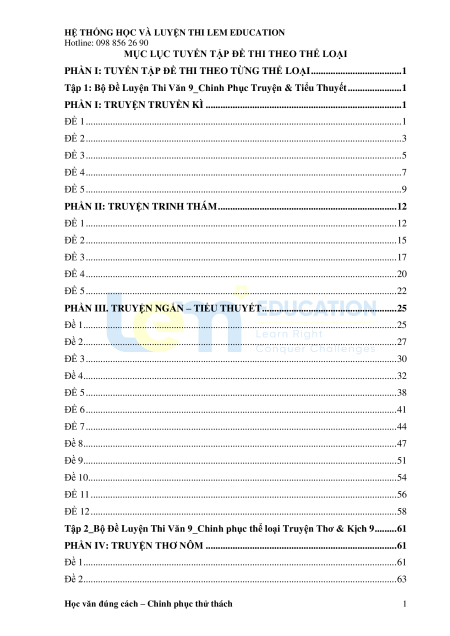 Tập 1: Bộ Đề Luyện Thi Văn 9_Chinh Phục Truyện & Tiểu Thuyết ...................... 1