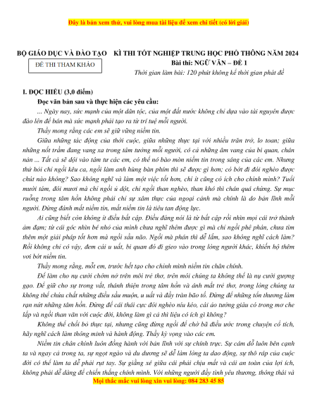 - Bộ đề thi thử Tốt nghiệp THPT Quốc gia môn Ngữ văn năm 2024 theo đề tham khảo.