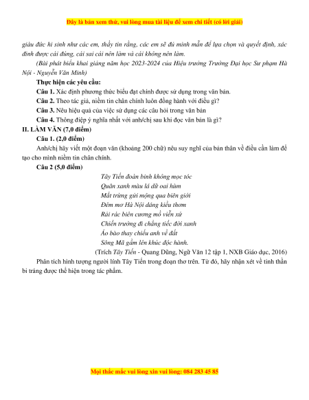 II. LÀM VĂN (7,0 điểm) Câu 1. (2,0 điểm)