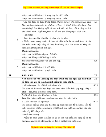 - Cách tính điểm của mỗi câu hỏi được quy định chi tiết trong Đáp án và hướng dẫn chấm. HƯỚNG DẪN CHẤM Phần Câu Nội dung Điểm I ĐỌC HIỂU 3,0