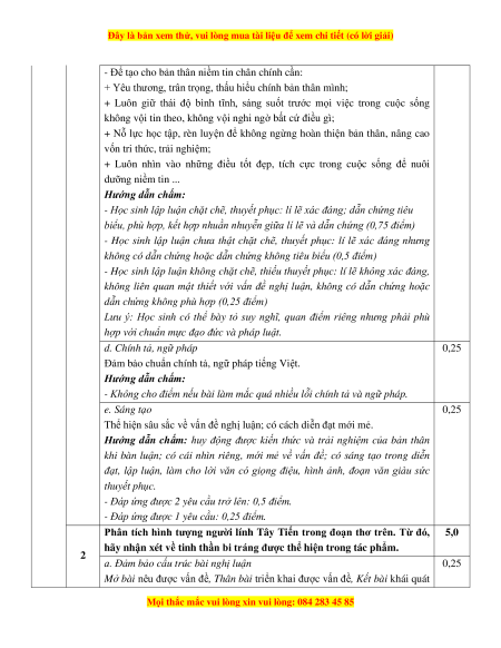 c. Triển khai vấn đề nghị luận 0.75