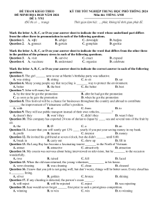 ĐỀ MINH HỌA BGD NĂM 2024 Môn thi: TIẾNG ANH ĐỀ 1- VN1
