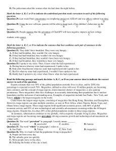 Question 35. The word “which” in paragraph 1 refers to ______. A. Sao Paulo B. Tokyo C. New York D. megacities