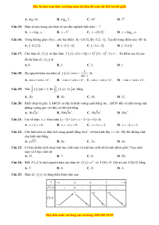 (x)dx = 3. Tích phân f (x)dx bằng 1 2 1 A. 2 B. 3 − C. 4. − D. 4 Câu 3:
