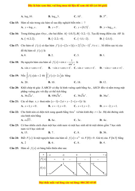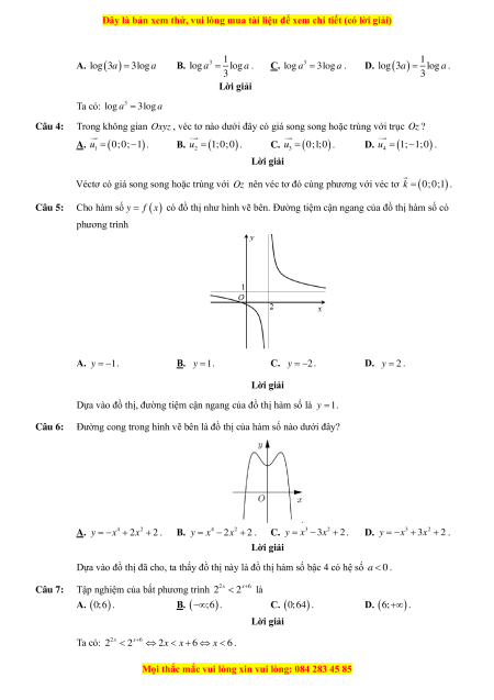 log a = 3log a . D. ( a) 1 log 3 = log a . 3 3 Câu 4: