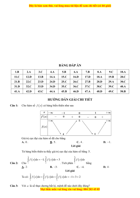 Giá trị cực đại của hàm số đã cho bằng A. 0 . B. 5 . C. 4 . D. −1. 2 4 4 Câu 2: Cho f (x)dx = 1 − ; f