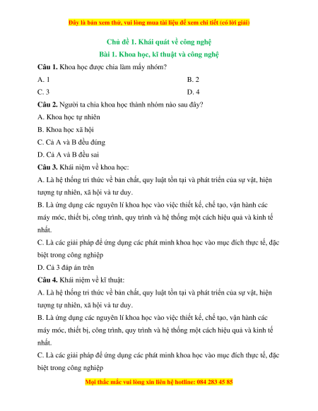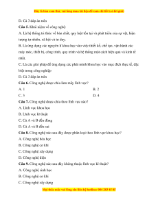 Câu 7. Công nghệ được chia theo lĩnh vực nào? A. Lĩnh vực khoa học