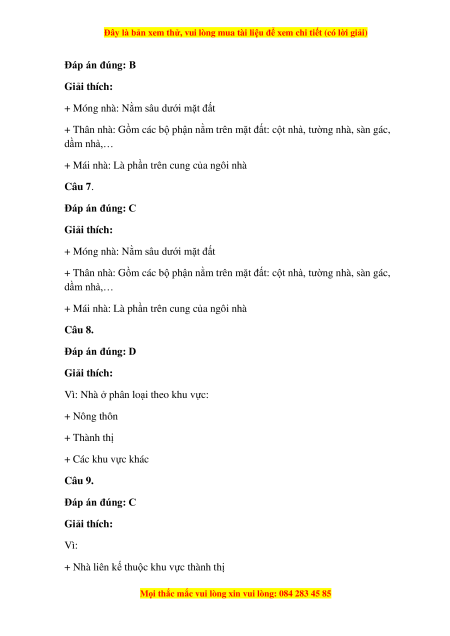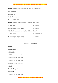 Câu 8. Kiến trúc nhà ở phân loại theo khu vực nào sau đây? A. Nông thôn B. Thành thị C. Các khu vực khác D. Cả 3 đáp án trên