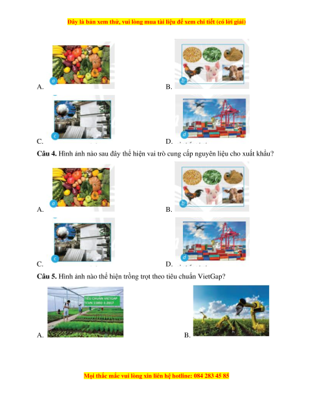 Câu 4. Hình ảnh nào sau đây thể hiện vai trò cung cấp nguyên liệu cho xuất khẩu? A. B. C. D.