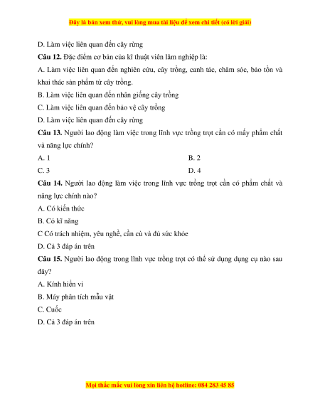 Câu 9. Đặc điểm cơ bản của nhà trồng trọt là: