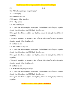 Câu 9. Kĩ sư bảo vệ thực vật: